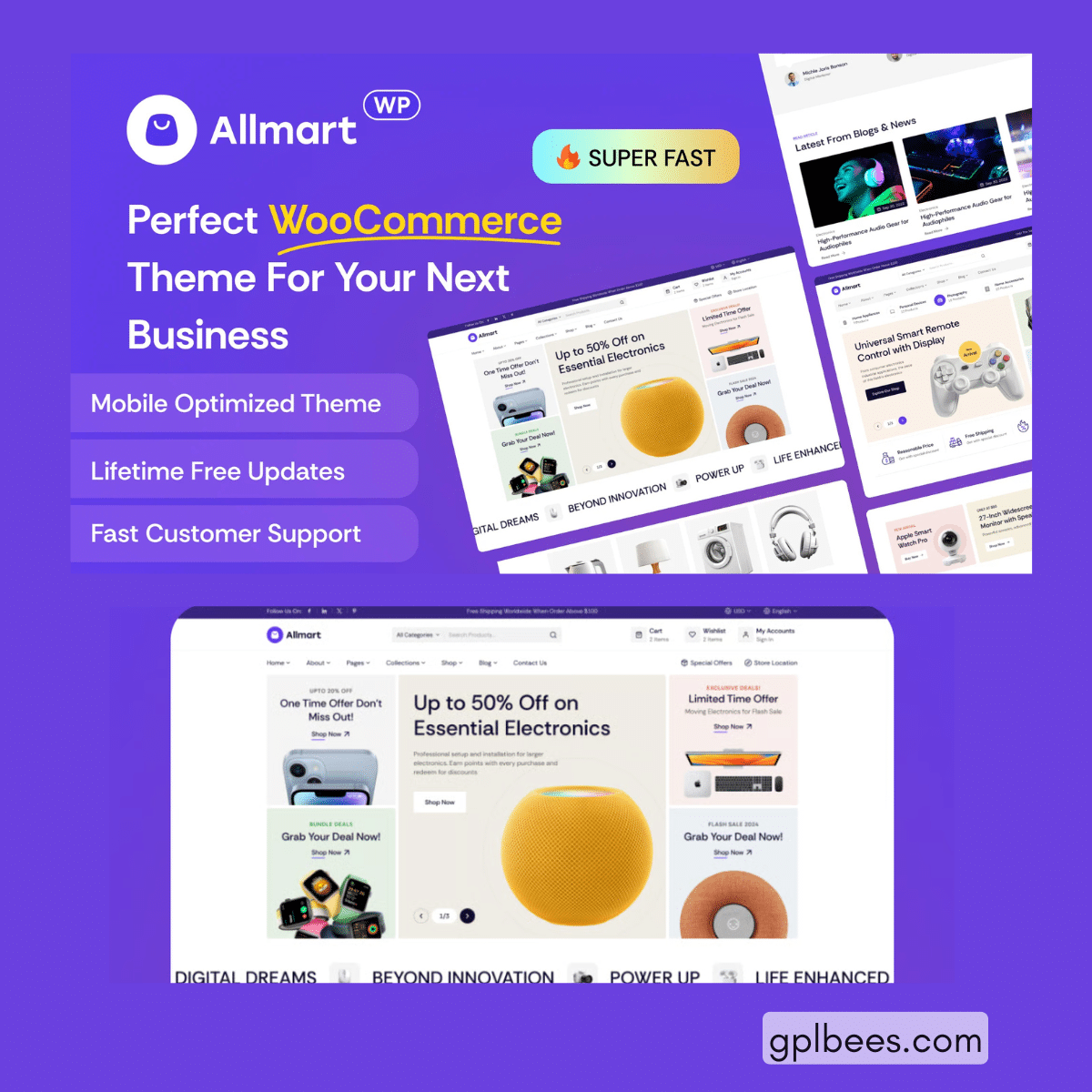 Download Allmart ? Electronics and Gadgets WordPress Theme with all premium features included. It comes with regular version updates (till your subscription ends). Use it on unlimited sites. It is safe, GPL-licensed, and budget-friendly. Say goodbye to costly licenses. Get freedom and flexibility. Malware-scanned and original from the author – no cracks or nulled files. Only at GPL Bees – your trusted source for top GPL products.
