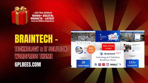 Strengthen the online presence of your technology business with Braintech. Purchase the Braintech – Technology & IT Solutions WordPress Theme at GPL Bees for affordable costs while standing out amongst competitors.