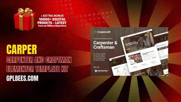 Make your craftsmanship shine online! Purchase the Carper – Carpenter and Craftman Elementor Template Kit at GPL Bees today!