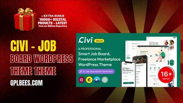 Enhance your recruitment website with GPL Bees and the Civi – Job Board WordPress Theme. Easily create a sophisticated and attractive job portal today!