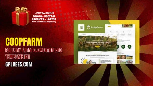 The CoopFarm – Poultry Farm Elementor Pro Template Kit is suited for poultry farm owners who need a professional website and web designers looking for customizable website templates at a reasonable price. Offered by GPL Bees under GPL License along with full functionality, unlimited domains, installation support, and competitve pricing, this template is an undeniable value. Using this template kit enables you to expand your digital presence, attract clients, and thrive in the digital world without the burden of heavy expenses.