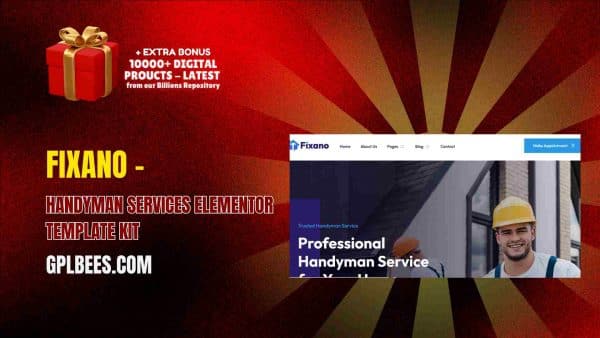 - Very Low Cost and Professional Quality: Now with GPL Bees, you can get Fixano – Handyman Services Elementor Template Kit at a bargain price. We provide this premium product under the GPL license which gives you the freedom to use it on an unlimited number of domains without any restrictions.
