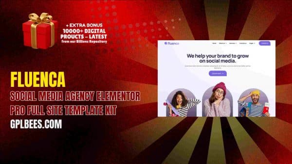 The Fluenca – Social Media Agency Elementor Pro Full Site Template Kit features a bold, thought-out solution for those looking to quickly improve the online presence of their social media agency. Being sold on GPL Bees makes it inexpensive, while paying professional design standards.