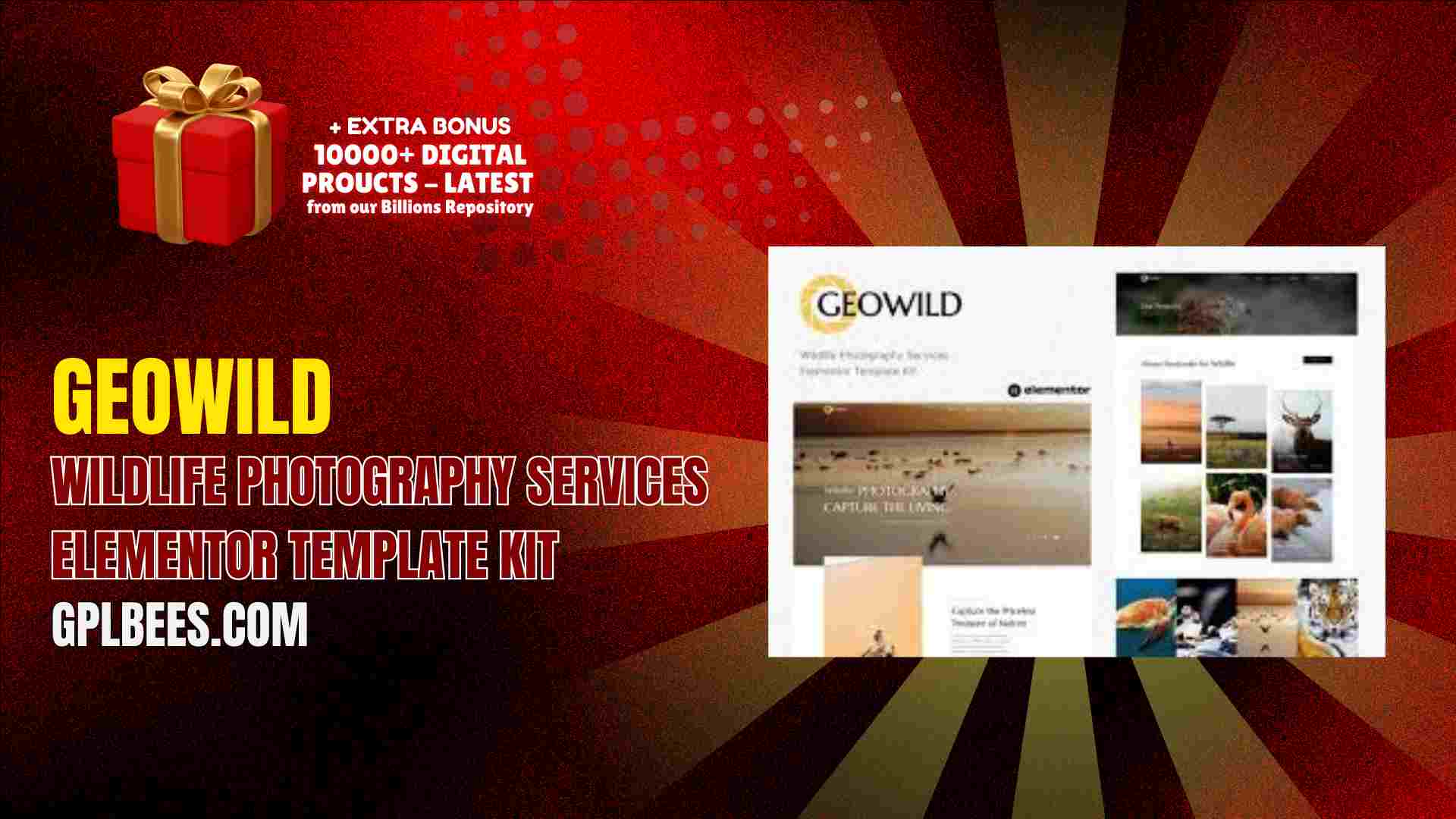 When acquiring the Geowild – Wildlife Photography Services Elementor Template Kit, these are your benefits with GPL Bees: