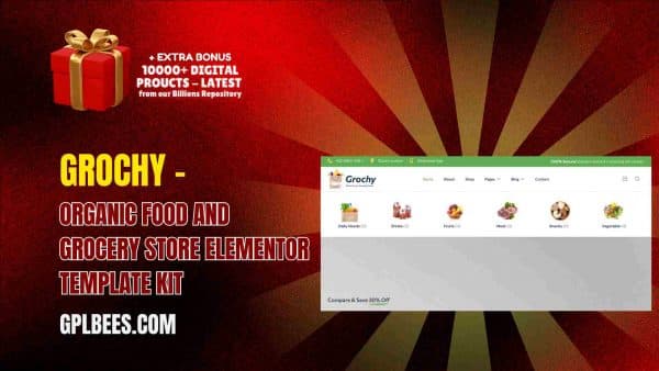 The Grochy – Organic Food and Grocery Store Elementor Template Kit is the perfect base for any organic food business or grocery store in need of a stunning website. With beautiful templates, full responsiveness, and ease of use, this kit ensures the customers have the best shopping experience possible. And the best part is, with GPL Bees, you are able to obtain this template kit for a low price and use it on as many domains as you want.