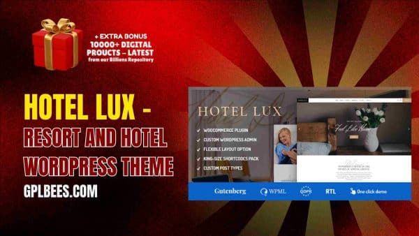 The WordPress theme created for resorts and hotels is ideal for hoteliers and resort owners seeking to bolster their digital marketing. With Hotel Lux, resort owners and managers can easily create their desired website. Use GPL Bees for all your premium needs at a low cost, complete with installation help and unlimited domain use at no extra cost.
