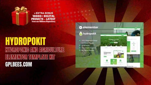 Begin today with your eco-vision with the Hydropokit – Hydroponic and Agriculture Elementor Template Kit by GPL Bees.