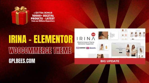Get the IRINA – Elementor WooCommerce Theme through GPL Bees for a fraction of the original price. Use it on unlimited domains and enjoy premium features without breaking the bank. Stop settling for mediocre themes — elevate your eCommerce site today!