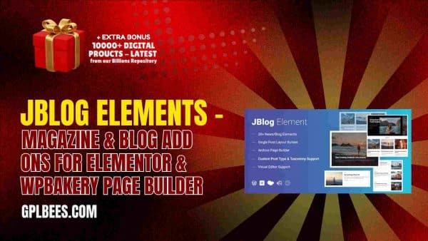 If you want to improve the layout of your WordPress magazine or blog, JBlog Elements – Magazine & Blog Add Ons for Elementor & WPBakery Page Builder is one of the best options. Under GPL licensing, it is also a cost-effective tool for small business owners and web designers. Buy now from GPL Bees and make the most of premium Code Canyon Plugins and Themes at incredible prices.