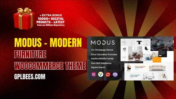 Acquiring the Modus – Modern Furniture WooCommerce Theme on GPL Bees provides a reliable, stylish, and powerful solution at a low cost. That makes it the best option for small business owners and web designers seeking to improve their online visibility. Download it today so you can start changing your store into a modern masterpiece!