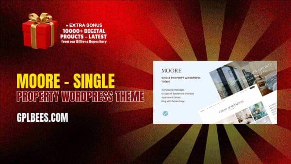The Moore – Single Property WordPress Theme is an elegant yet simple tool that allows single properties to be showcased in the most beautiful way possible. It does not matter if you are a realtor, property holder, or developer; this theme has everything you need to establish a stunning online presence. Brought to you by GPL Bees, it combines budget-friendliness with full features, making it a superb option for small business and web designers.