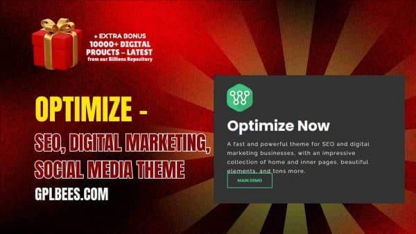 We are pleased to present the most comprehensive solution for your digital marketing and SEO requirements – Optimize – SEO, Digital Marketing, Social Media Theme offered by GPL Bees. This theme integrates modern design and technology to assist small entrepreneurs and web designers build custom websites with ease.