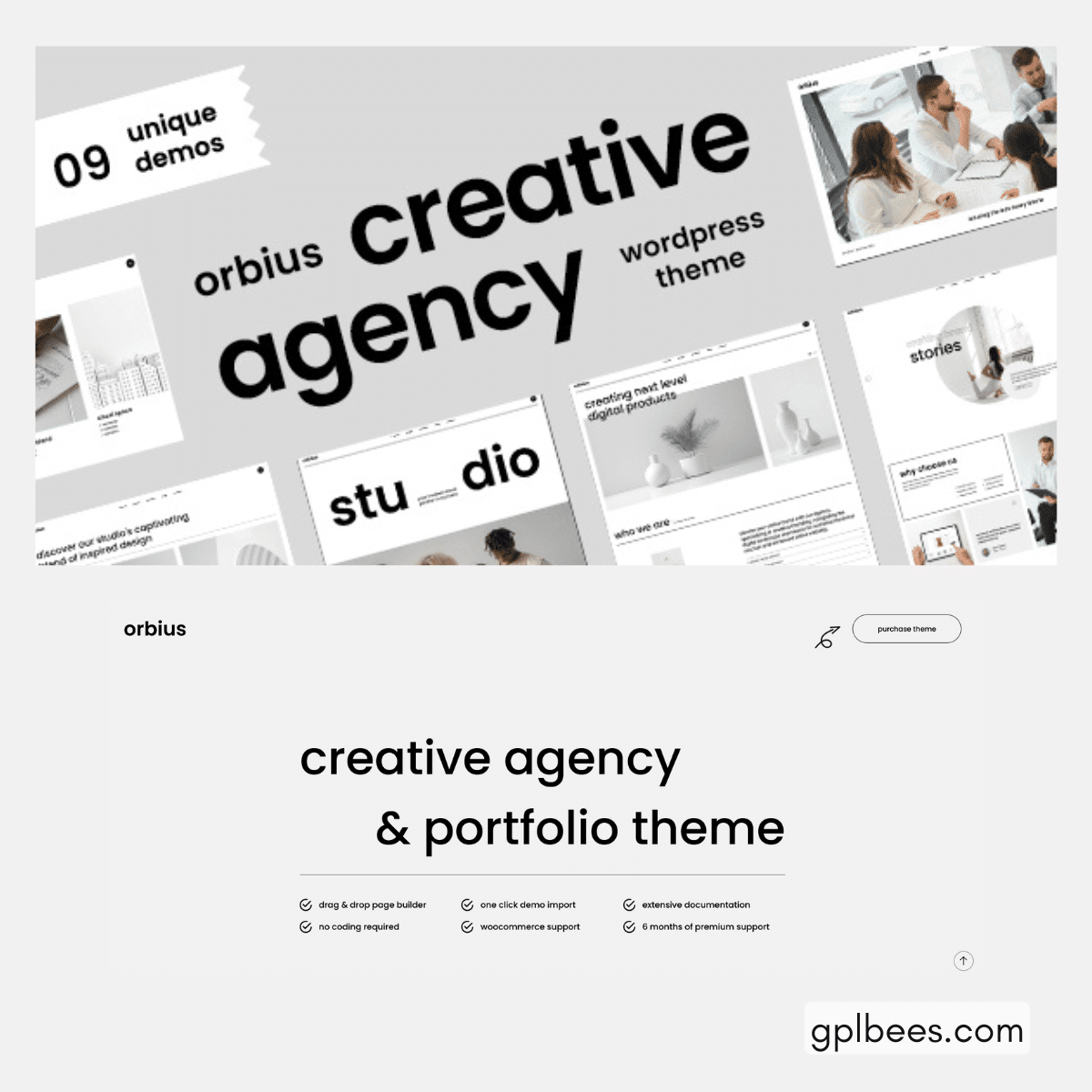 Download Orbius ? Creative Agency and Portfolio Theme with all premium features included. It comes with regular version updates (till your subscription ends). Use it on unlimited sites. It is safe, GPL-licensed, and budget-friendly. Say goodbye to costly licenses. Get freedom and flexibility. Malware-scanned and original from the author – no cracks or nulled files. Only at GPL Bees – your trusted source for top GPL products.