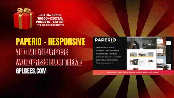 Purchase Paperio – Responsive and Multipurpose WordPress Blog Theme from GPL Bees now and enhance your WordPress blog’s design with contemporary style and new features. Begin crafting your ideal website today!