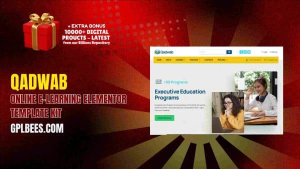 Selecting Qadwab – Online e-Learning Elementor Template Kit from GPL Bees means selecting an affordable and legally licensed solution to boost your learning business.