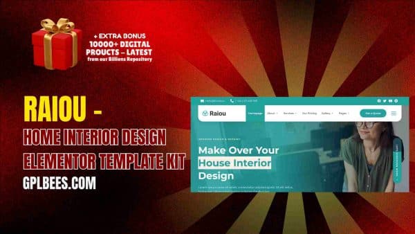 Raiou – Home Interior Design Elementor Template Kit is an ideal tool for those who want to create an elegant looking professional interior design website. It is very easy to use and guarantees seamless integration with Elementor and a beautiful design, so that you can display your interior design skills perfectly. Even better, with GPL Bees, you get these fantastic features and premium benefits at an unrivaled price and unlimited access on numerous sites.