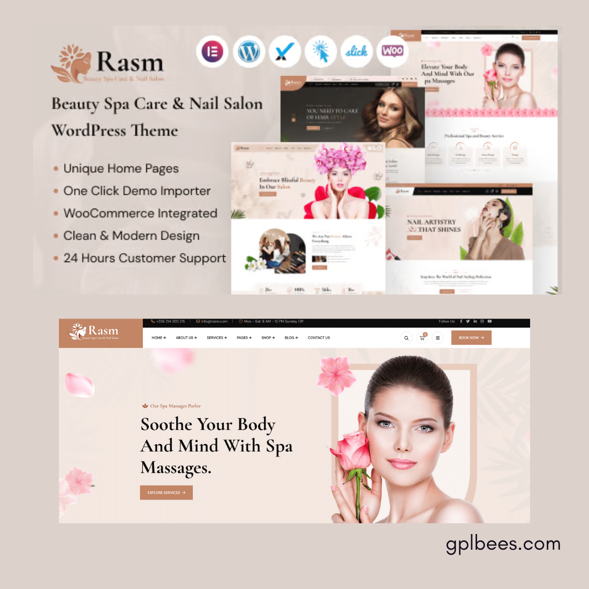 Download Rasm ? Beauty Spa Care and Nail Salon WordPress Theme with all premium features included. It comes with regular version updates (till your subscription ends). Use it on unlimited sites. It is safe, GPL-licensed, and budget-friendly. Say goodbye to costly licenses. Get freedom and flexibility. Malware-scanned and original from the author – no cracks or nulled files. Only at GPL Bees – your trusted source for top GPL products.