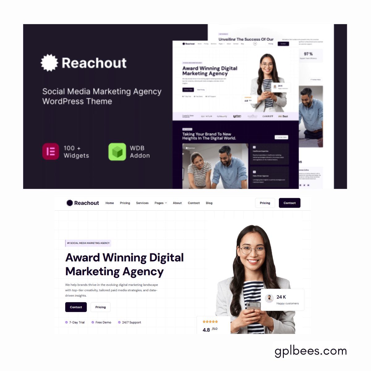 Download Reachout ? Social Media Marketing Agency WordPress Theme with all premium features included. It comes with regular version updates (till your subscription ends). Use it on unlimited sites. It is safe, GPL-licensed, and budget-friendly. Say goodbye to costly licenses. Get freedom and flexibility. Malware-scanned and original from the author – no cracks or nulled files. Only at GPL Bees – your trusted source for top GPL products.