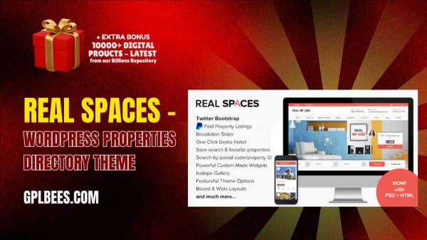 In case you are looking for a WordPress-based Real Estate Properties Directory theme, the Real Spaces – WordPress Properties Directory Theme will meet all your requirements. It is easy to use, offers a great level of customization, comes with a lot of vital components that will enable the creation of an efficient real estate platform, and can be purchased from GPL Bees, who provide this theme with all premium capabilities at an unmatched cost and offer Help with installation. Start using the Real Spaces theme now to allow your users to effortlessly and professionally search for properties.