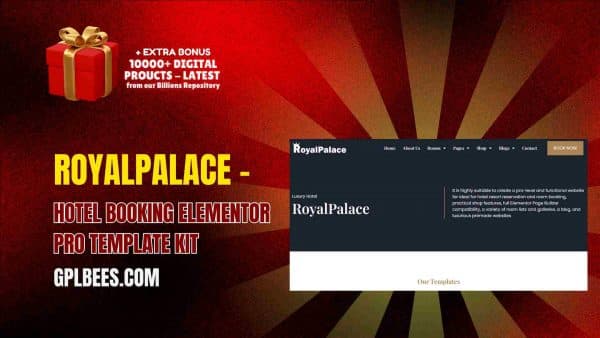 The GPL Bees brand focuses on making quality WordPress plugins and themes available at low rates to help struggling business owners and web designers. With the Royalpalace – Hotel Booking Elementor Pro Template Kit, you are able to make the most out of your hotel’s webpages and substantially increase your clientele and reservations.