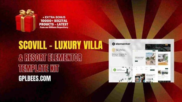 The Scovill – Luxury Villa & Resort Elementor Template Kit serves luxury resorts, hotels, and villas aiming to build a sophisticated digital brand. It includes premium designs, ease of use with Elementor, as well as Themeforest Plugins and Themes, which makes professional website design simple. Acquire it today from GPL Bees, and start designing your impressive hospitality website.