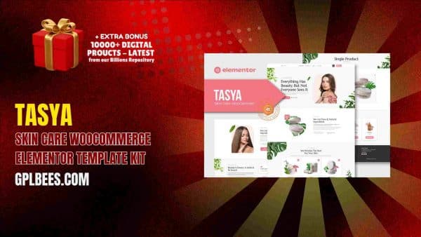 Harness the growth of your skincare brand! Start today with the Tasya – Skin Care WooCommerce Elementor Template Kit and the excellent backend support provided by GPL Bees.