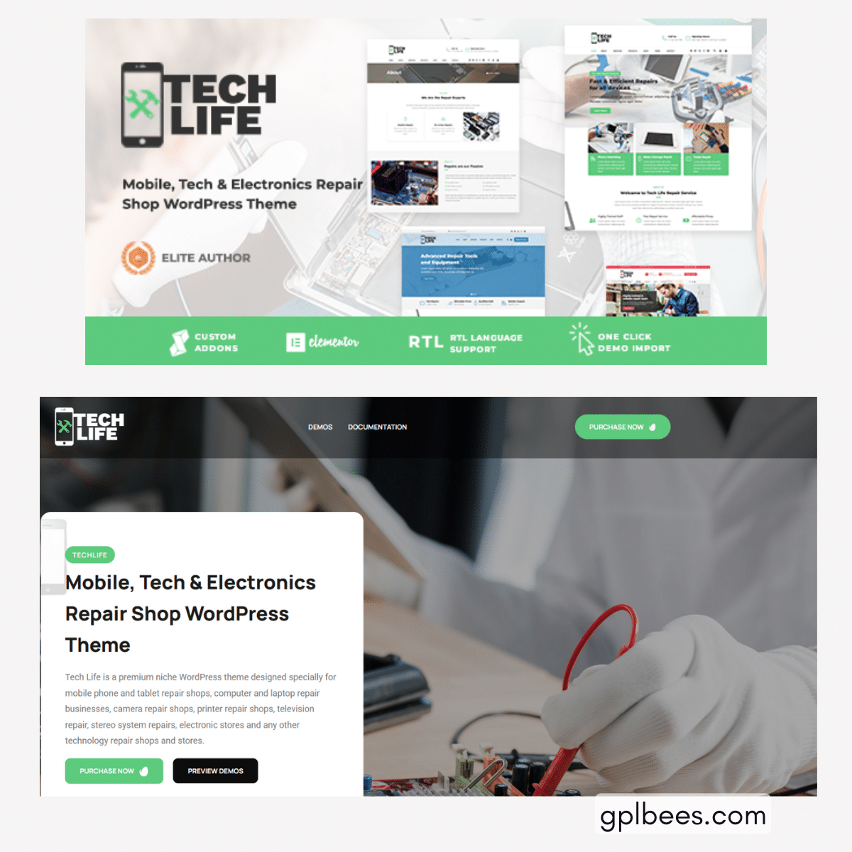 Download TechLife ? Mobile, Tech and Electronics Repair Shop WordPress Theme with all premium features included. It comes with regular version updates (till your subscription ends). Use it on unlimited sites. It is safe, GPL-licensed, and budget-friendly. Say goodbye to costly licenses. Get freedom and flexibility. Malware-scanned and original from the author – no cracks or nulled files. Only at GPL Bees – your trusted source for top GPL products.