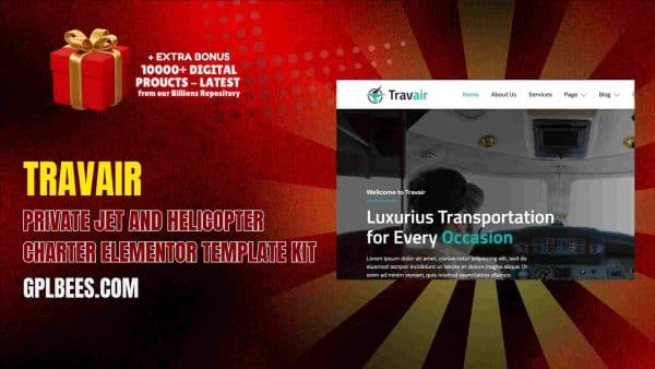 Do not let this chance to enhance your aviation website development pass you—grab your Travair – Private Jet and Helicopter Charter Elementor Template Kit right now and sharpen your competitive edge.
