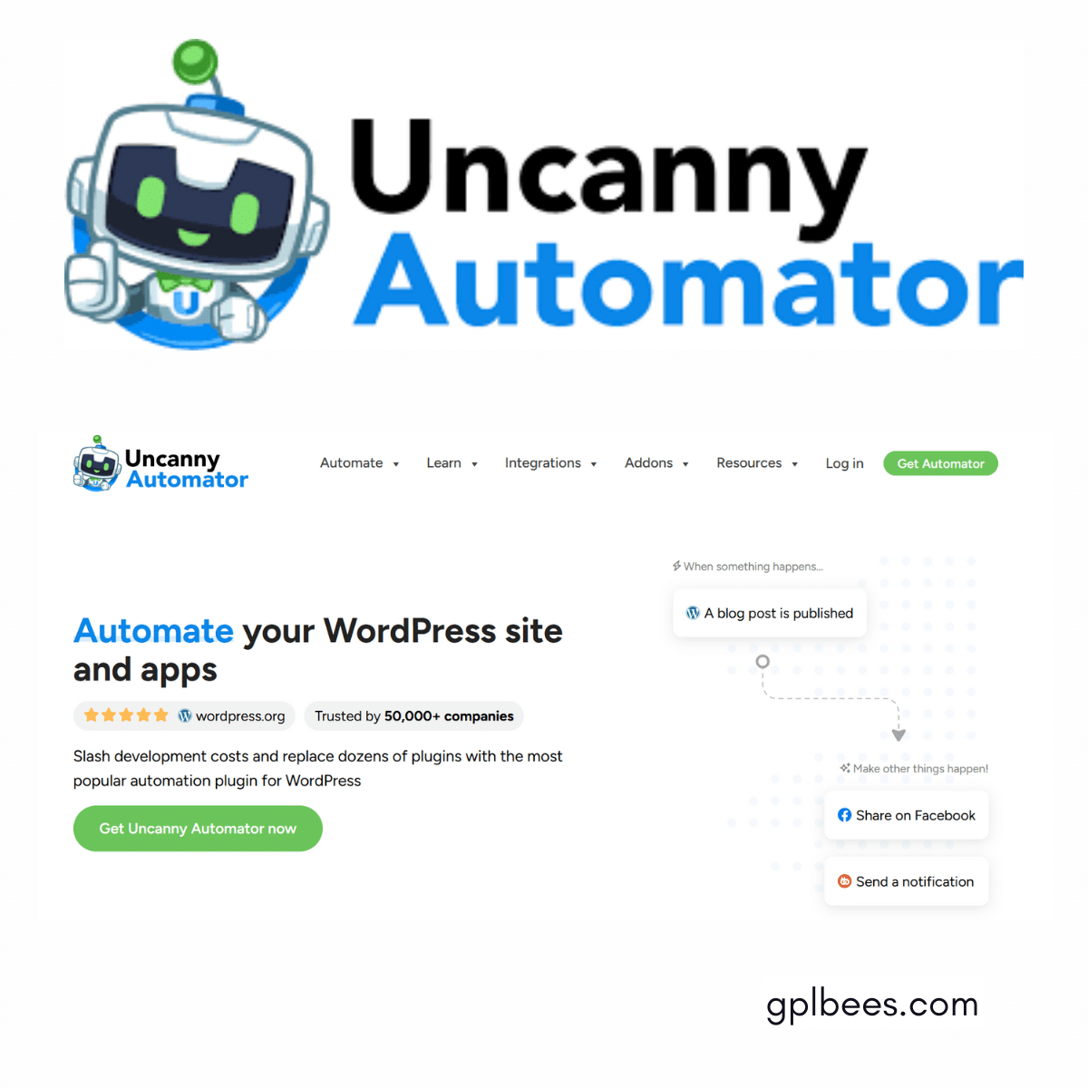 Download Uncanny Automator Pro with all premium features included. It comes with regular version updates (till your subscription ends). Use it on unlimited sites. It is safe, GPL-licensed, and budget-friendly. Say goodbye to costly licenses. Get freedom and flexibility. Malware-scanned and original from the author – no cracks or nulled files. Only at GPL Bees – your trusted source for top GPL products.