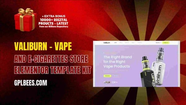 Valiburn – Vape and E-Cigarettes Store Elementor Template Kit provides you with premade website modern aesthetics, convenience, and fully responsive layouts. This kit caters to the needs of vape shop owners, providing a professional and tidy design for easy browsing, purchasing, and Displaying goods.