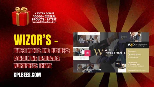 For this reason, GPL Bees is excited to present to you Wizor’s – Investments and Business Consulting Insurance WordPress Theme under GPL Licensing. Our customers are provided with unlimited domain usage and all features, including premium ones, at a small fraction of the price of competing premium themes.